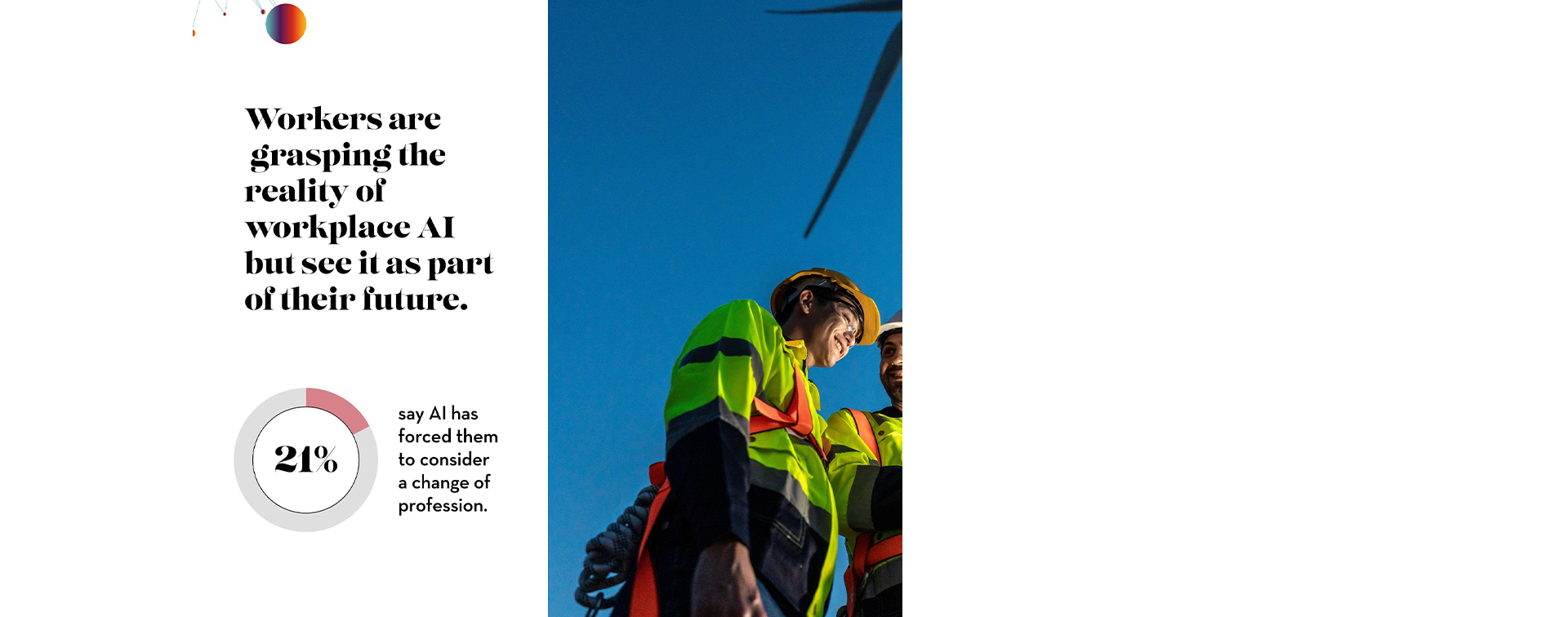 Our research shows that workers are worried about an uncertain future. AI-driven change is their number one concern, with two fifths (40%) of global workers worried about their long-term job security.