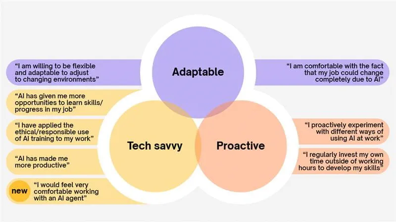 In our latest 2025 research, ‘Humanity at work: How to thrive in the AI era’, workers who agree to all eight qualifying statements now make up around one third of the workforce in 2025 (37%), compared with 11% in 2024. It’s a reflection on how more employees are developing the skills and mindset needed to thrive in an AI-driven workplace.