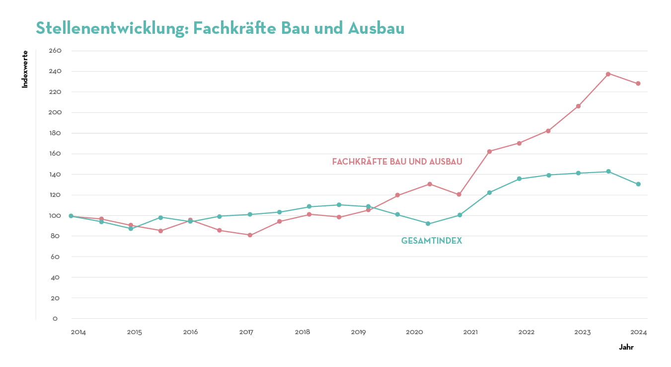 Fachkräfte Bau und Ausbau: Rückgang von hohem Niveau aus