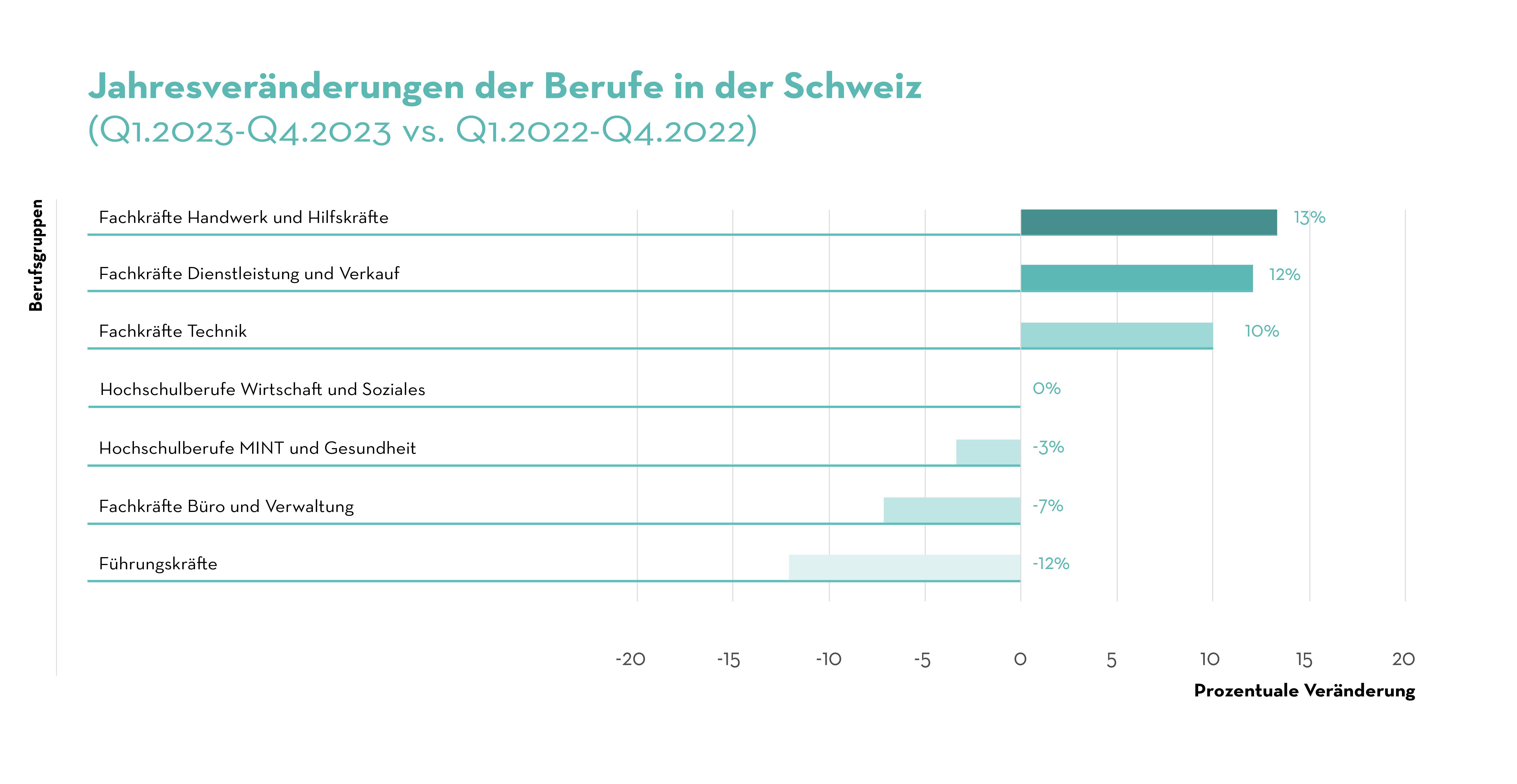 «Das Jahr 2023 stand im Licht der Hilfskräfte, Handwerks- und Dienstleistungsberufe. Trotz wirtschaftlichen Herausforderungen erlebten diese Arbeitskräfte eine steigende Nachfrage. Dies betont die wesentliche Rolle dieser Berufe für die Schweizer Wirtschaft.»