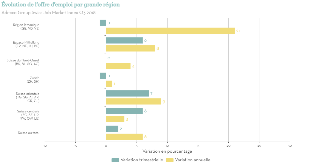 Der Adecco Group Swiss Job Market Index liegt im dritten Quartal 2018 um 6 Prozent höher als noch im Herbst des letzten Jahres. Im Vergleich zum letzten Quartal bleibt der Index mit einem Plus von 2 Prozent stabil. Um saisonale Effekte bereinigt ist, im Vergleich zum Vorquartal ein Plus von lediglich 1 Prozent festzustellen. Nicole Burth, CEO der Adecco Group Schweiz, ergänzt: «Insgesamt setzt sich der seit Ende 2015 beobachtete, positive Trend weiter fort.»