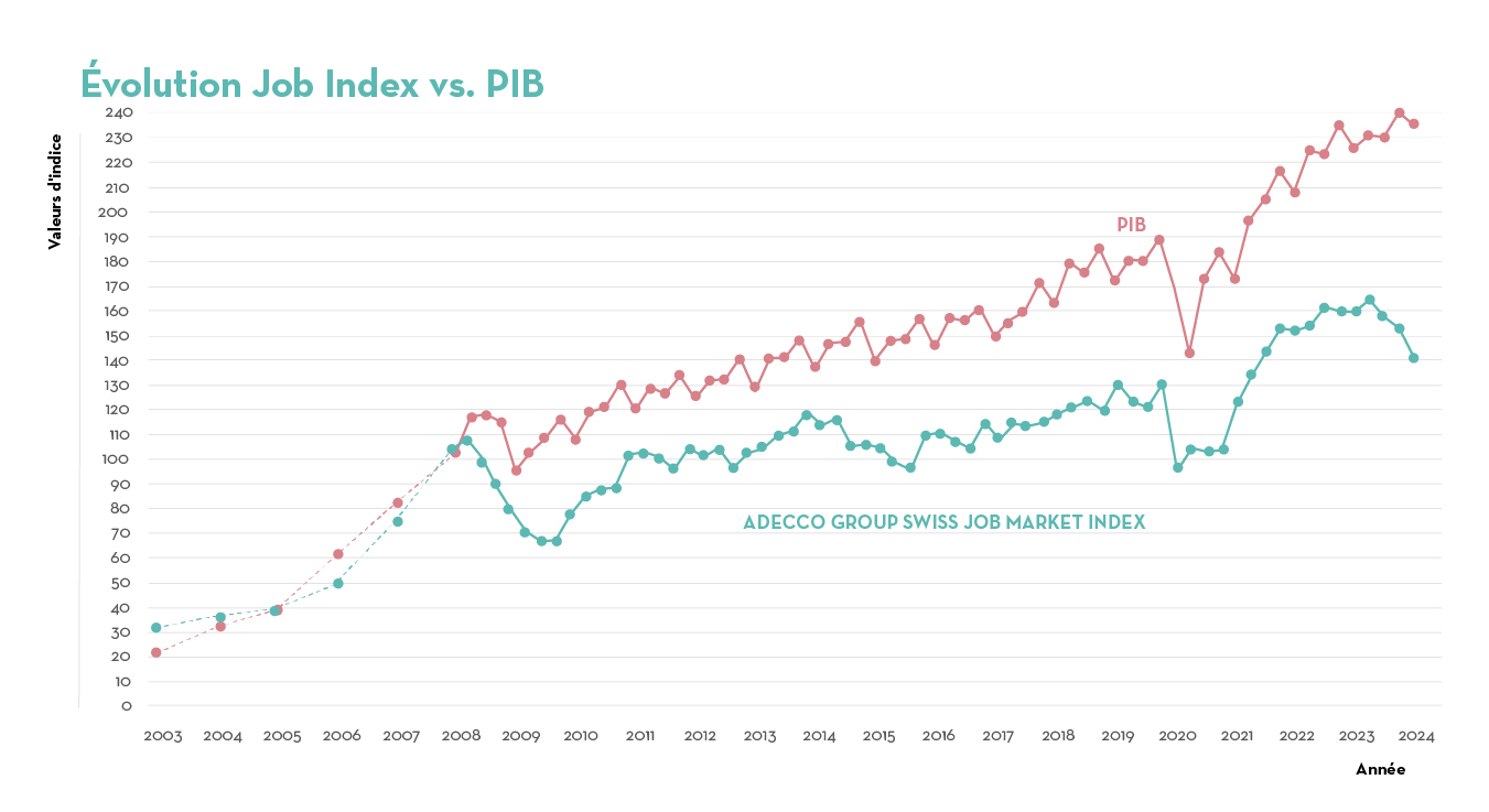« La situation sur le marché du travail continue de se dégrader. Le nombre d’offres d’emploi diminue et le chômage a augmenté de plus de 17’000 personnes par rapport à l’an passé. De même, les entreprises sont moins nombreuses à déplorer des difficultés de recrutement. La recherche d’emploi se complique donc à nouveau petit à petit pour les personnes en recherche. »