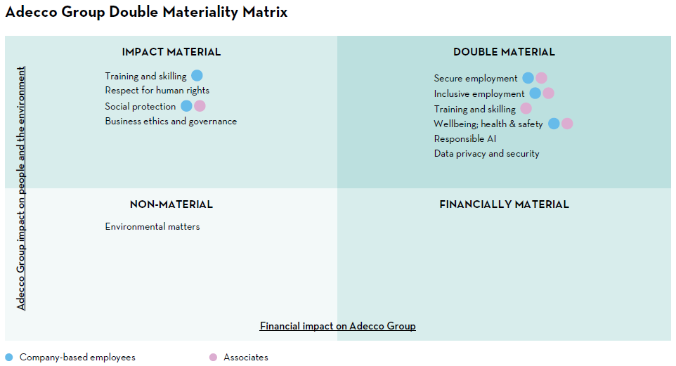 - Material to our stakeholders and material to our business, but with existing solid or leading performance and thus limited need to prioritise but rather continue to evolve as part of daily business (e.g., data privacy or tax responsibility).