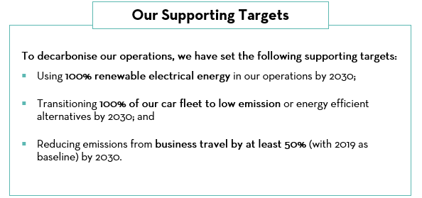 In addition to our science-based targets, we have furthermore signed off internal targets to support our ambitious emissions reductions in our own operations: