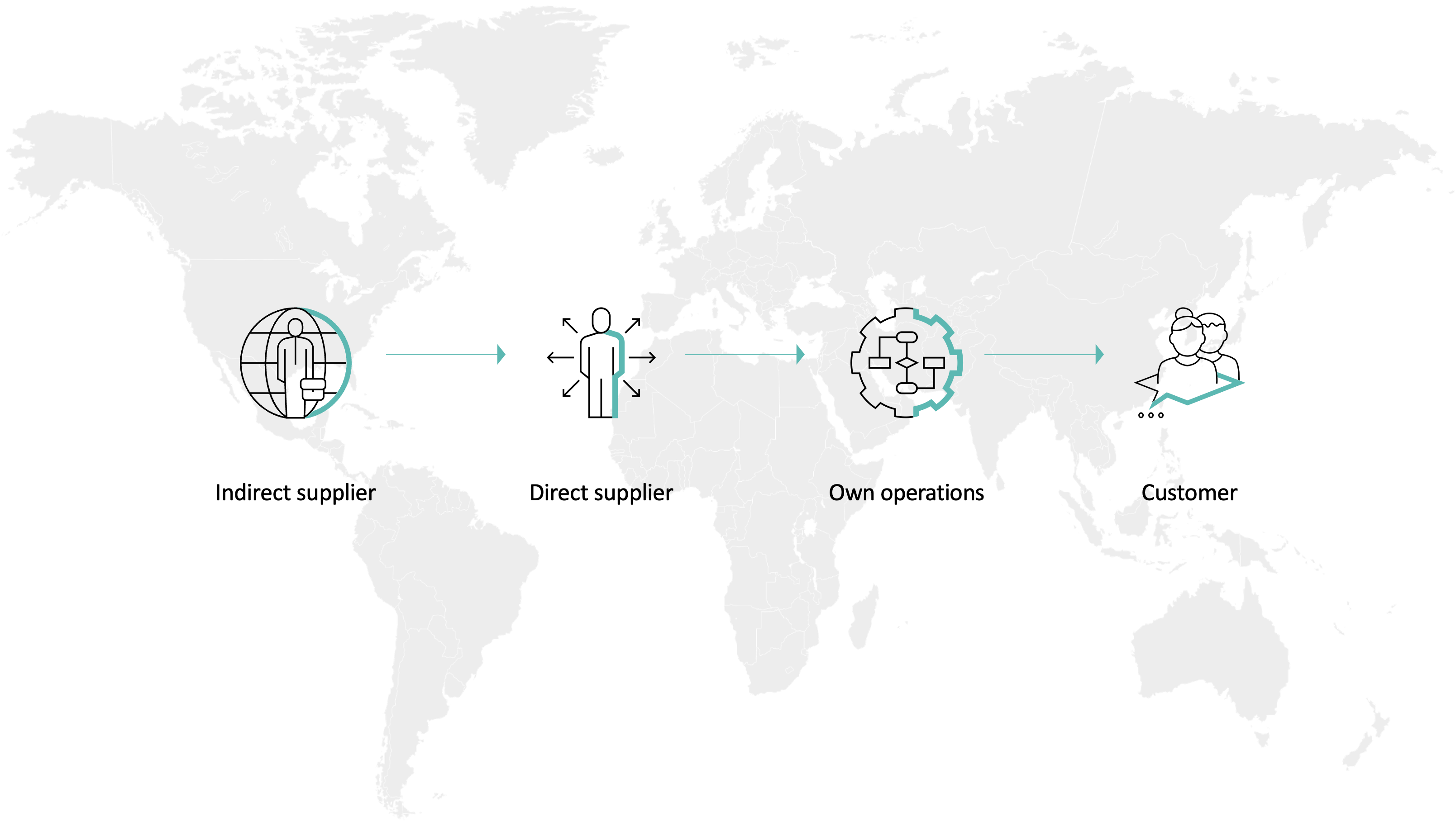 Third Parties are obliged to adhere to the Group’s standards of sustainable business conduct and to support relevant risk-based due diligence activities.