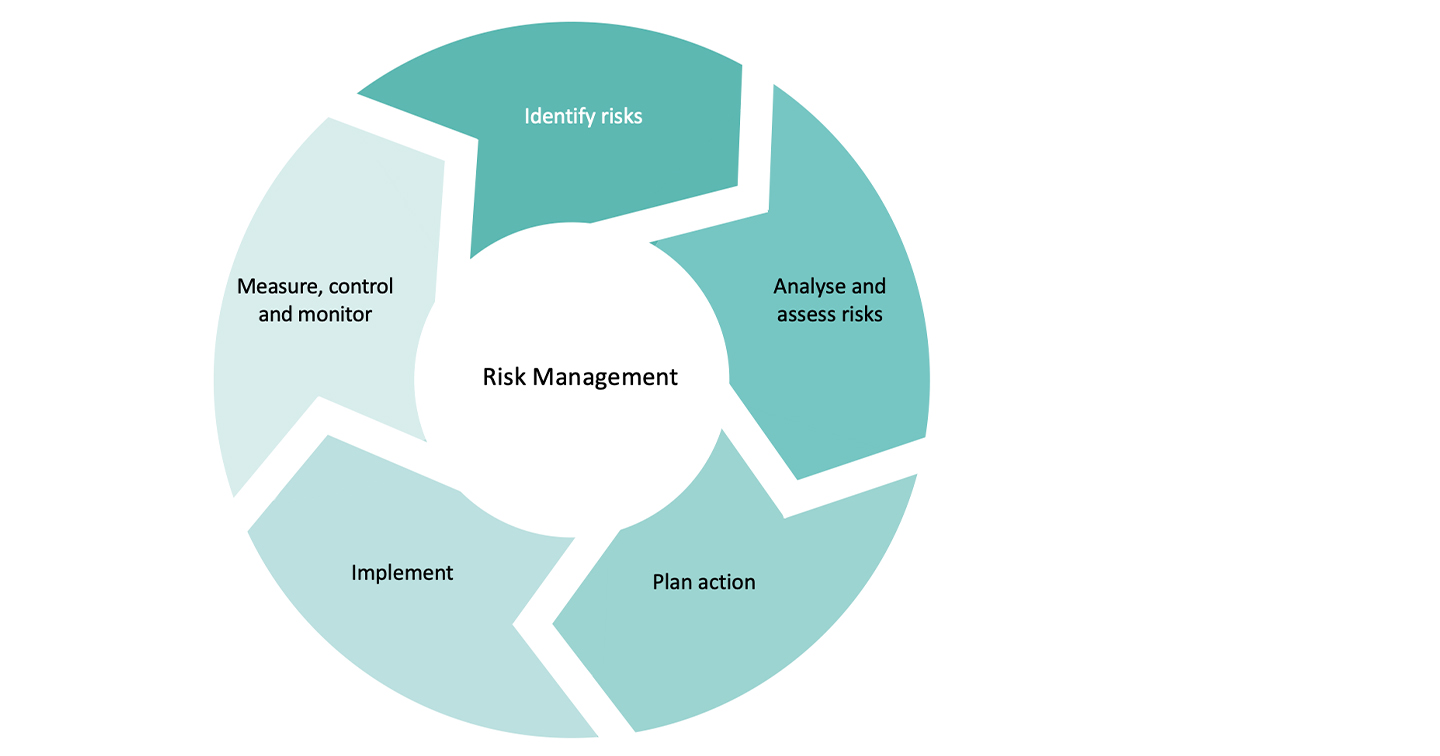 - Implement: Risks must either be eliminated or mitigated. This is done by subject matter experts who define the necessary risk mitigation measures and monitor their implementation.